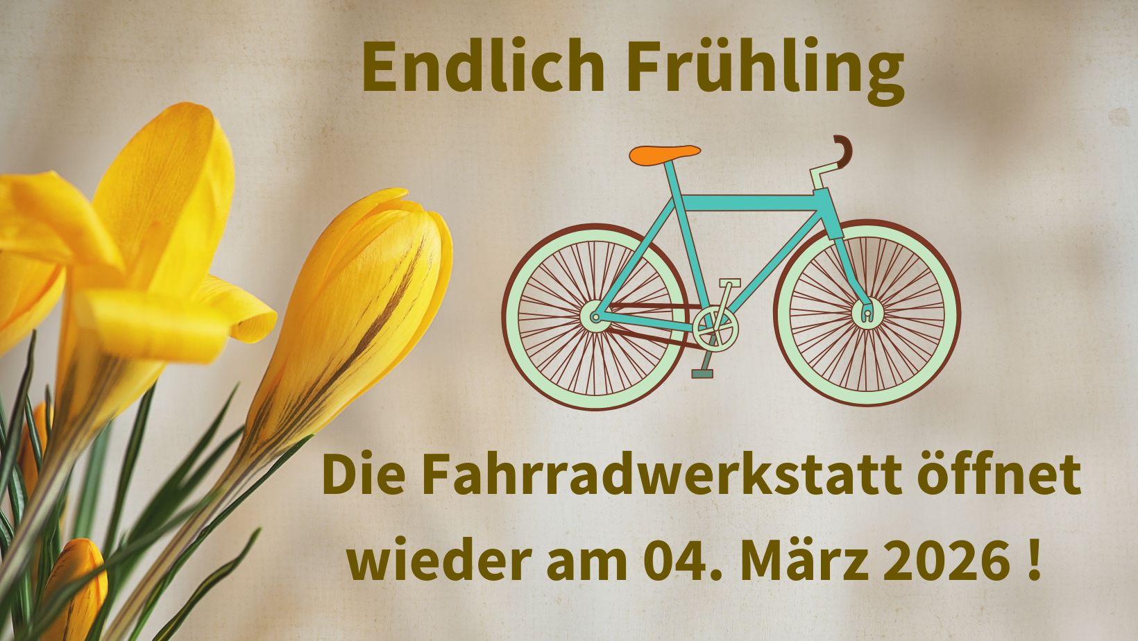 Ab dem 4. März 2026 öffnet die Fahrradwerkstatt in der Realschulstraße 2 wieder zur gewohnten Zeit von 16 bis 18 Uhr.